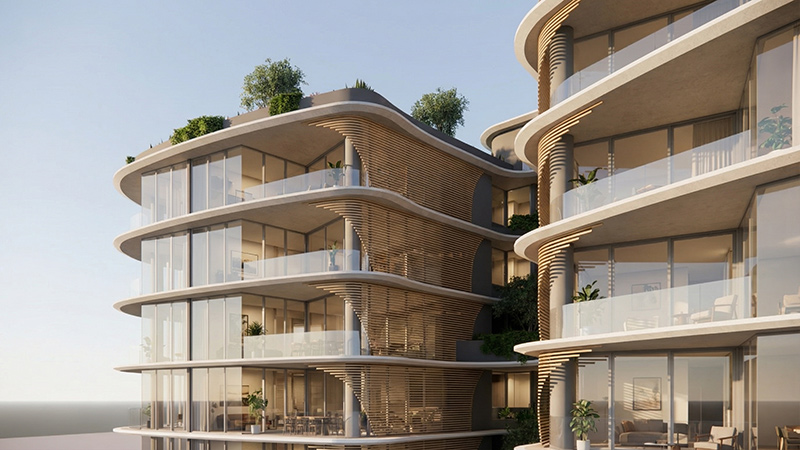 Each unit would have a private balcony extending from the living space, with some apartments featuring secondary balconies adjoining master bedrooms.
